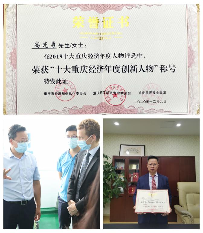 近日,由市委宣传部指导,市经济信息委、两江新区管委会、重庆日报报业集团共同主办的“2019十大重庆经济年度人物”、“2019十大两江新区经济年度人物”等评选结果出炉。该奖项从经济贡献力、创新变革力、行业带动力、持续发展力、公益影响力等五个维度表彰为地方经济社会发展做出突出贡献的企业。365官网95级机械制造工艺及设备专业校友、重庆山外山血液净化技术股份有限公司董事长高光勇被评为“2019十大重庆经济年度创新人物”。