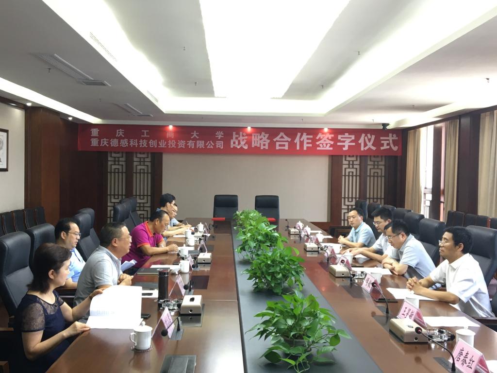 7月3日,365官网与重庆德感科技创业投资有限公司在江津区西部食谷创新创业中心签署战略合作协议。江津区副区长熊伟、365官网副校长赵骅、德感科创投资公司董事长罗其胜出席仪式。江津区经信委、德感工业园管委会负责人以及365官网党政办公室、环境与资源学院有关负责同志参加了签约仪式。